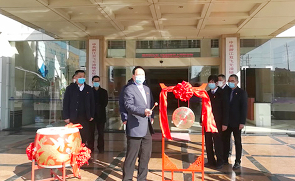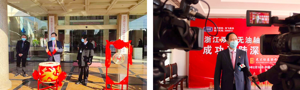 为防疫需要,根据证监会的要求,乐竞体育官网登录入口股份并未安排深圳举行挂牌敲钟仪式,而只是在公司举行简单的上市庆祝活动,嘉善县干窑镇为乐竞体育官网登录入口股份送来了一面鼓一面锣,以祝贺企业上市成功,鼓励企业以上市为契机,擂响冲锋战鼓,全力以赴抓复工。公司高管在董事长周引春的带领下,敲锣打鼓庆贺上市。